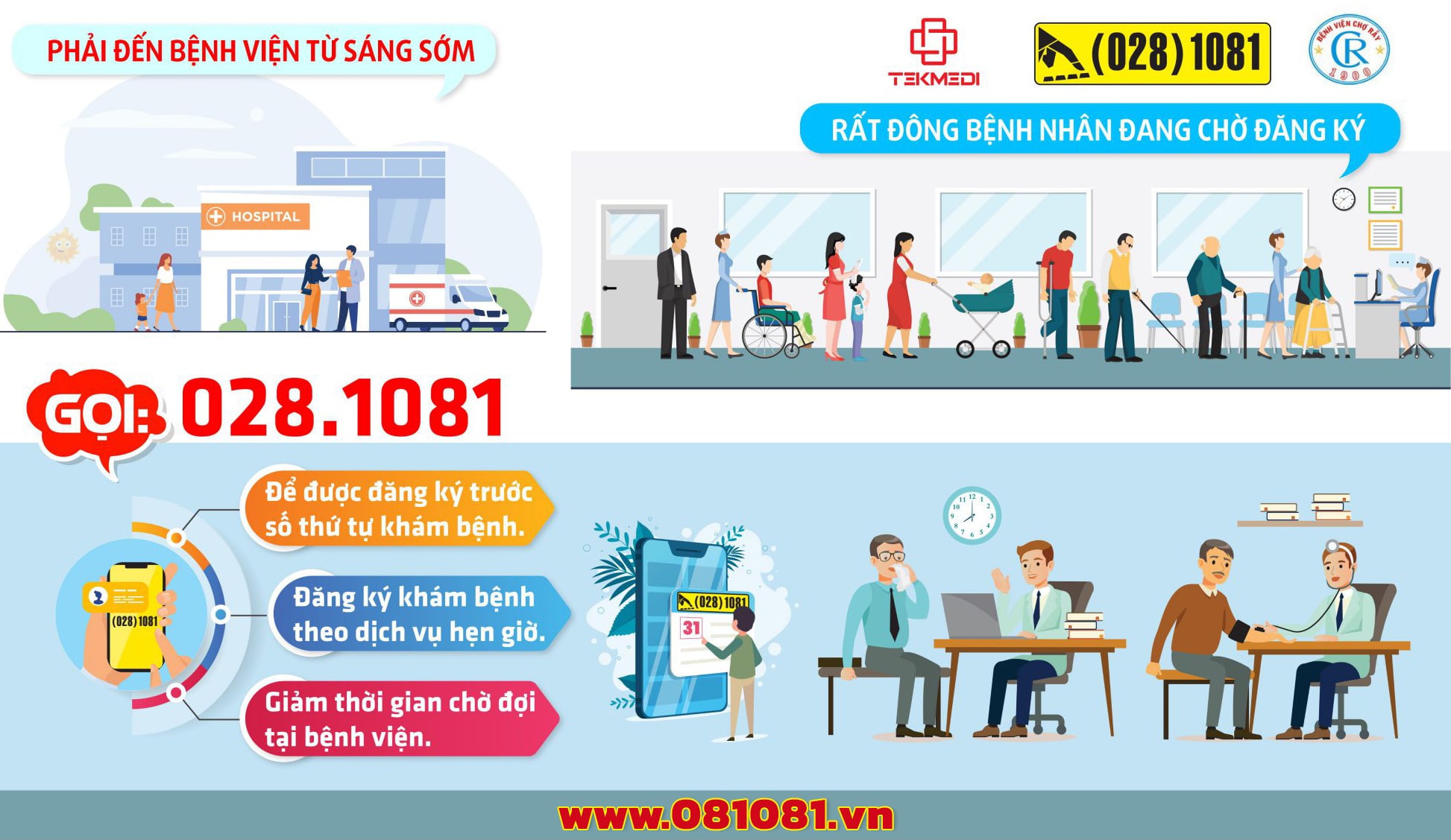 Hiện nay, người dân Tp.HCM và các tỉnh thường gọi đến đài (028) 1081 lấy số thứ tự đăng ký khám bệnh ở các bệnh viện và phòng mạch bác sĩ. Khi gọi vào (028)1081, khách hàng chỉ cần cung cấp các thông tin: bệnh viện, phòng mạch bác sĩ cần khám, họ tên, tuổi, địa chỉ người khám, điện thoại liên lạc; sau đó nhận được số thứ tự khám, giờ khám và được hướng dẫn thủ tục đóng tiền cũng như ngày giờ khám chuyên khoa tại các bệnh viện, phòng khám. Người bệnh chỉ cần đăng ký trước 1 ngày hoặc trước 1 tuần trong tháng là có lịch khám. Hiện tại, TP HCM đã có rất nhiều bệnh viện lớn có uy tín tham gia hình thức đăng ký khám qua đài (028)1081 gồm: Từ Dũ, Hùng Vương, Chợ Rẫy, Tai Mũi Họng, Bình Dân, Quận 3, Quận 5…